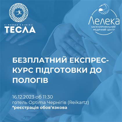 Клініка "Тесла" та МЦ «Лелека» запрошує майбутніх мам на безкоштовний експрес-курс підготовки до пологів.