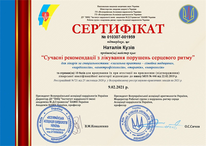 Стаж роботи: 7 років в палаті інтенсивної терапії для кардіологічних хворих