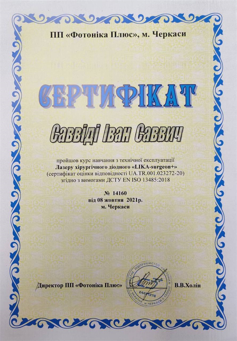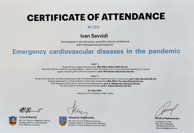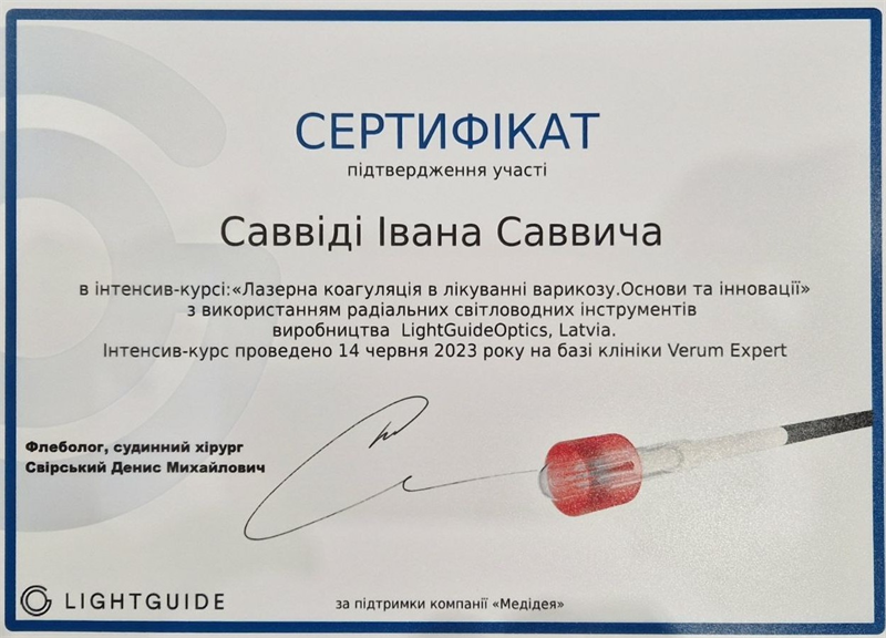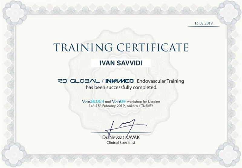 2019 - сертифікований член асоціації судинних хірургів, флебологів та ангіологів України