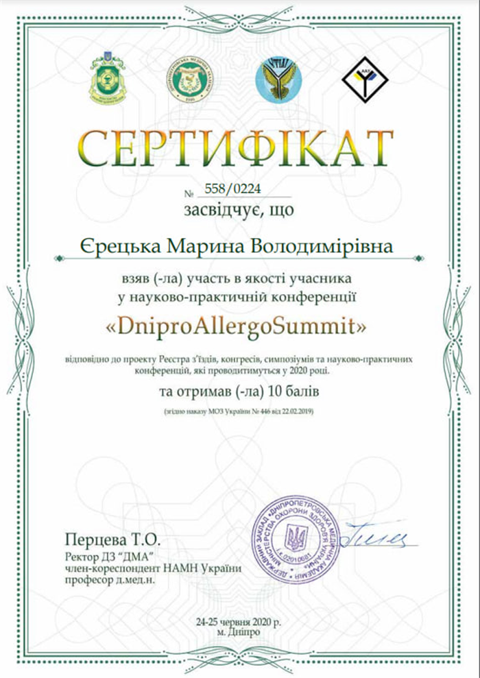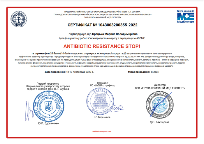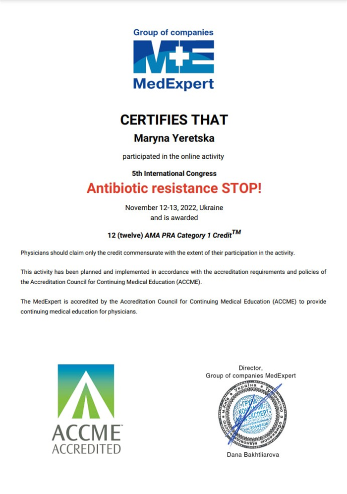 2019- курси "Профілактика та заходи боротьби з внутрішньолікарняною інфекцією" (ХМАПО)