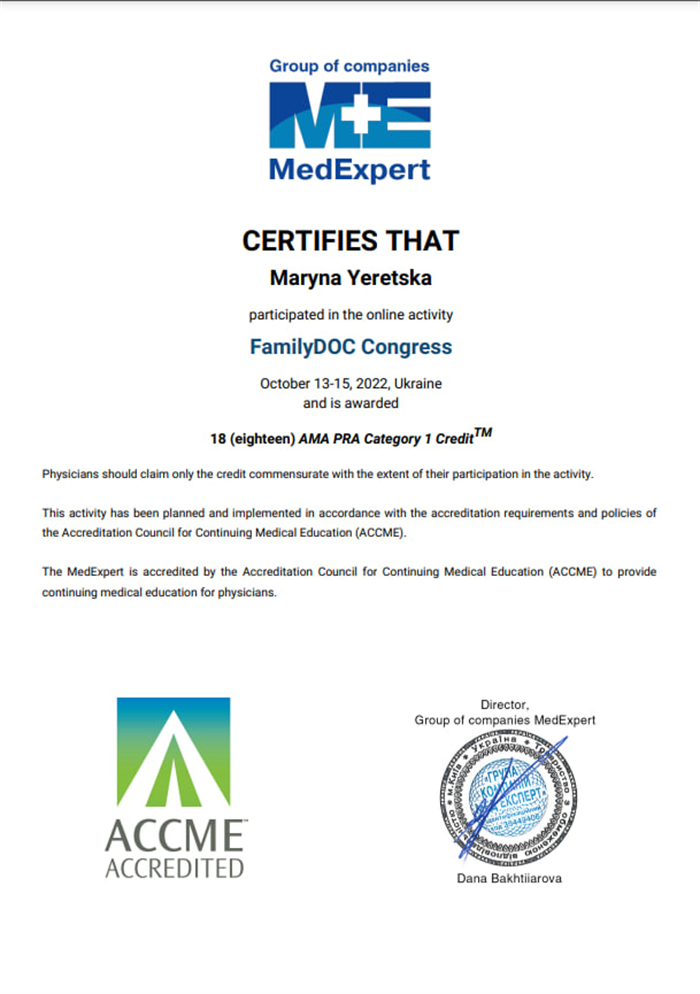 Освіта: Національний медичний університет імені О.О. Богомольця (м. Київ)